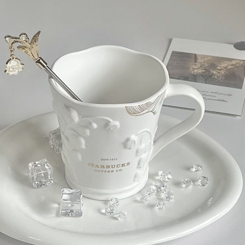2023 Starbucks Mug Elegant Lily of the Valley Colorful Relief Glass Cup W/ Stick
