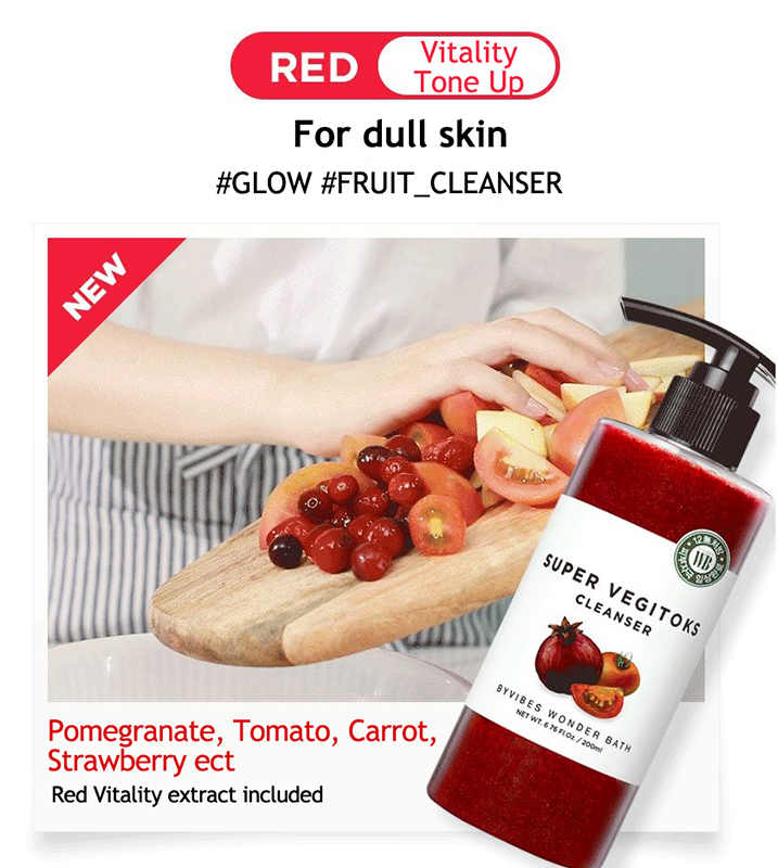 • Super Vegitoks Cleanser Red: Whitening and Moisturizing. Suitable for oily skin type.
