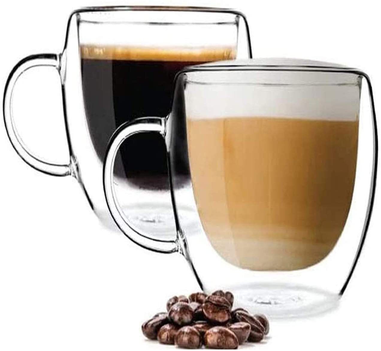 Coffee Glass Double Wall Insulated Glass Mug Tea Cup with Handle 150/250/350/450