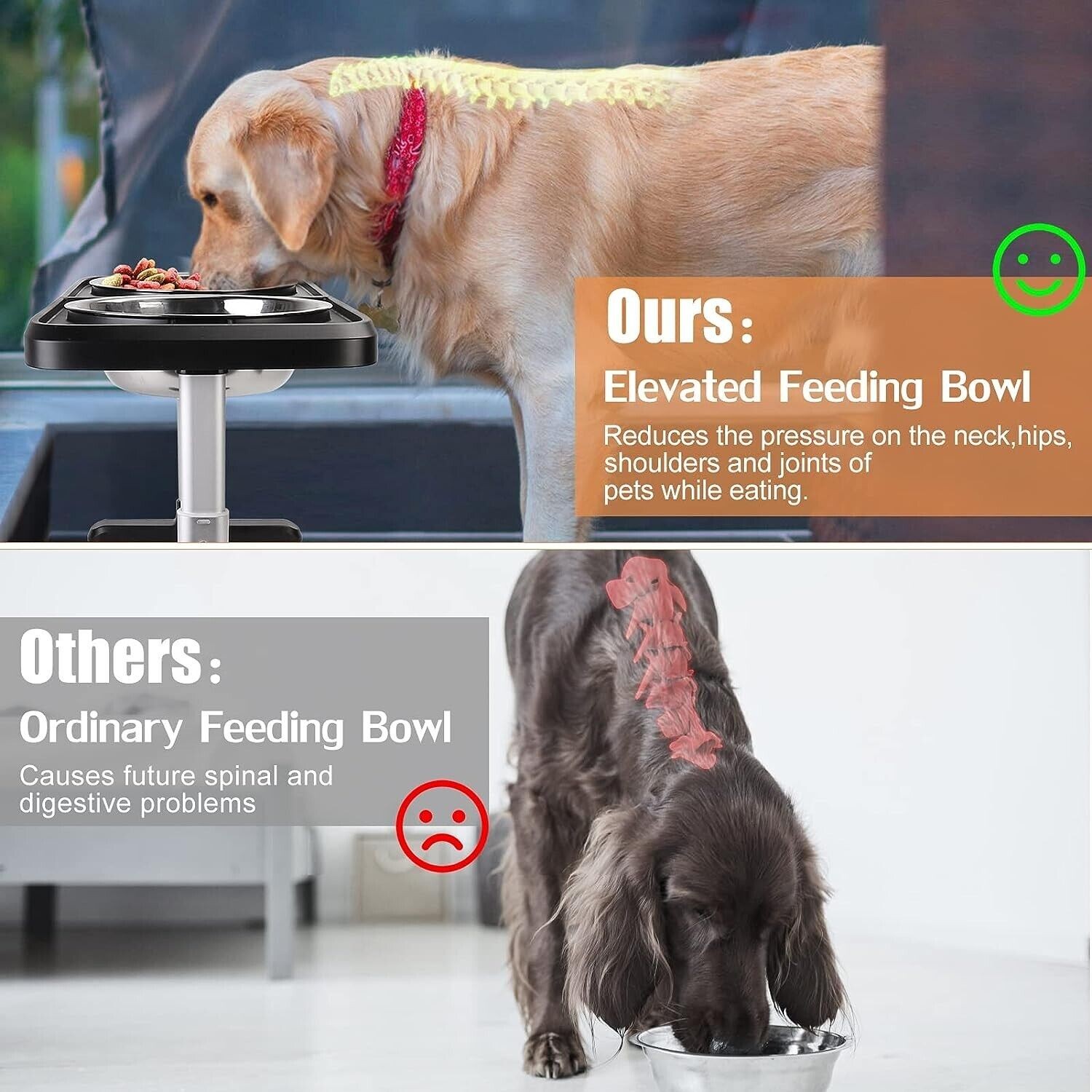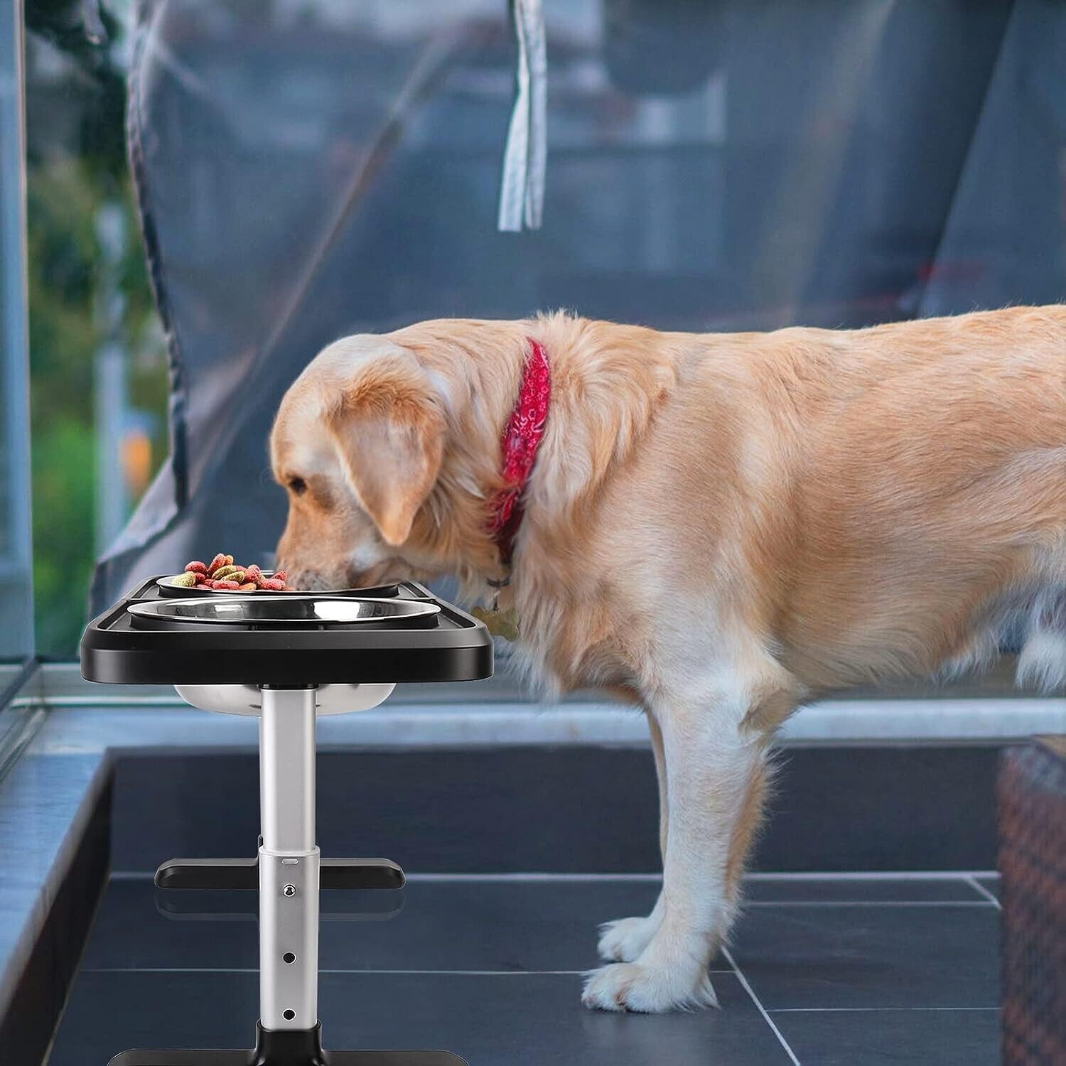 Elevated Dog Bowls for Large Dogs, 4 Adjustable Heights Raised Pet Bowl Stand US