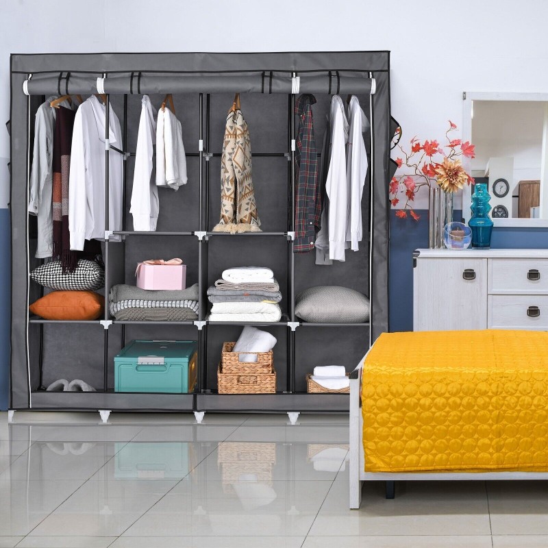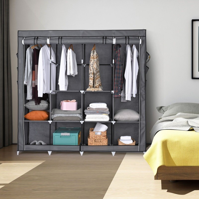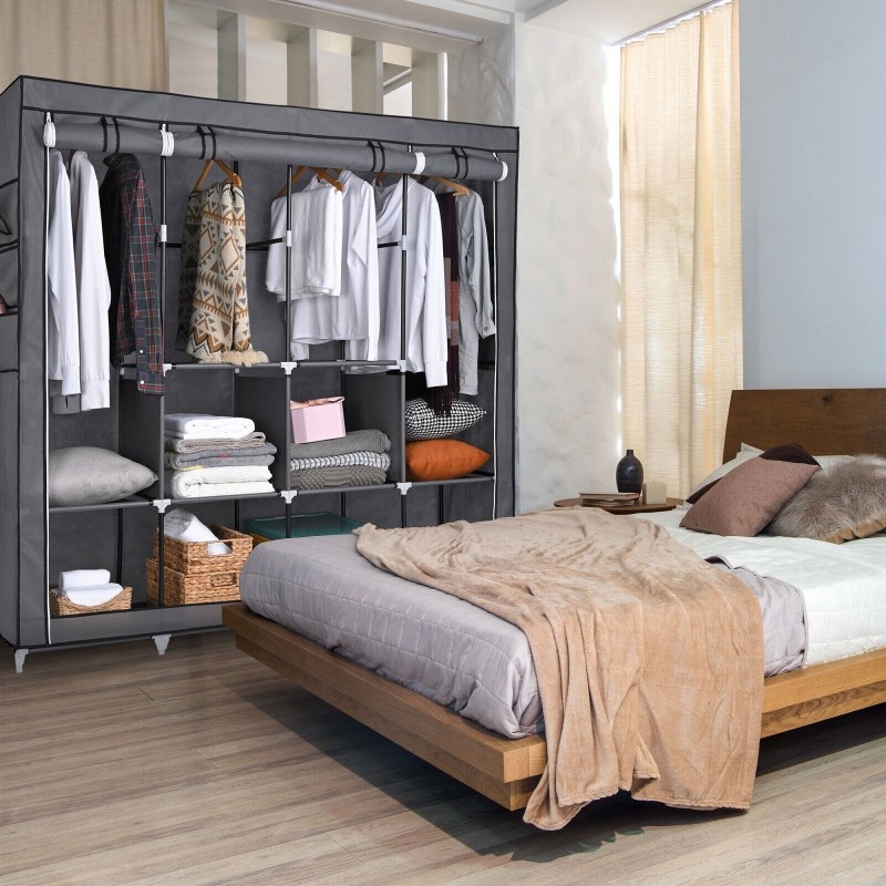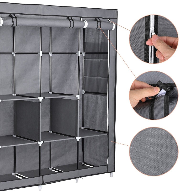 Portable Fabric Closet Wardrobe Roll-Up Door Clothes Rack Storage Organizer New