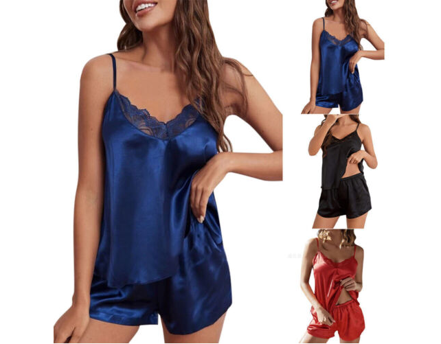 * Item:  Women Lingerie PJS Set Lace Cami Vest Pyjamas Sleepwear Casual Satin Silk Shorts